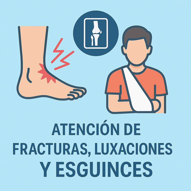 Evaluación y tratamiento inmediato de lesiones agudas como fracturas, luxaciones, esguinces y traumatismos severos. Atención rápida y eficaz para estabilizar al paciente y evitar complicaciones.